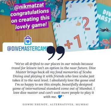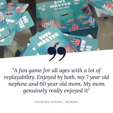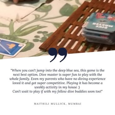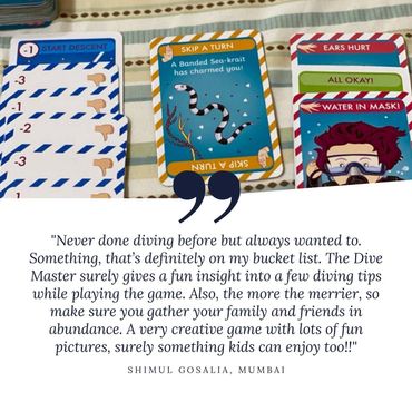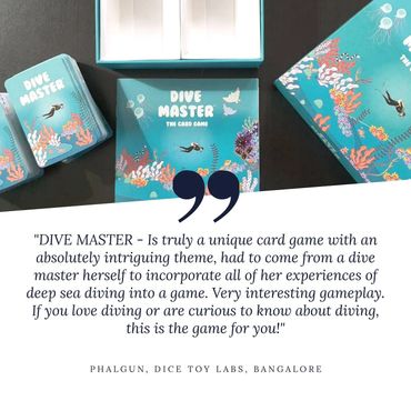 Dive Master card game is thematic, fun and action-packed! Suitable for players aged 10 and above, with 2-5 players. The objective of the game is to dive down 30 meters and come back to the surface while avoiding attacks from opponents and also throwing new hurdles at them. It's a bit about luck and holding on to the right cards for optimum moves
